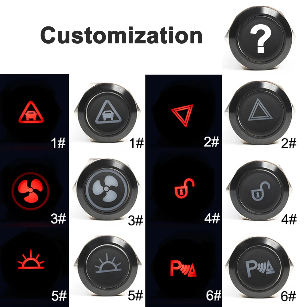 19 мм глинозема Momenary/запирающийся автомобильный динамик рога buttonswitch металлический светодиодный логотип фиксированный кнопочный переключа...