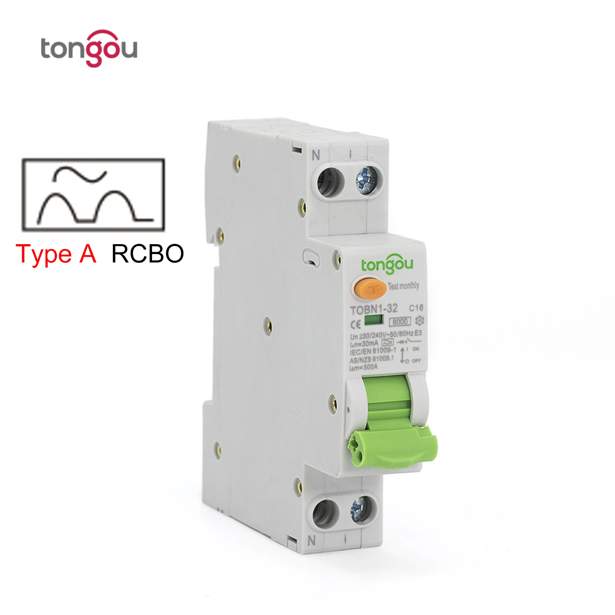 Тип A RCBO 6KA 18 мм 6A 10A 20A 25A 32A 30mA 1P + N автоматический выключатель с защитой от перегрузки по току и утечки
