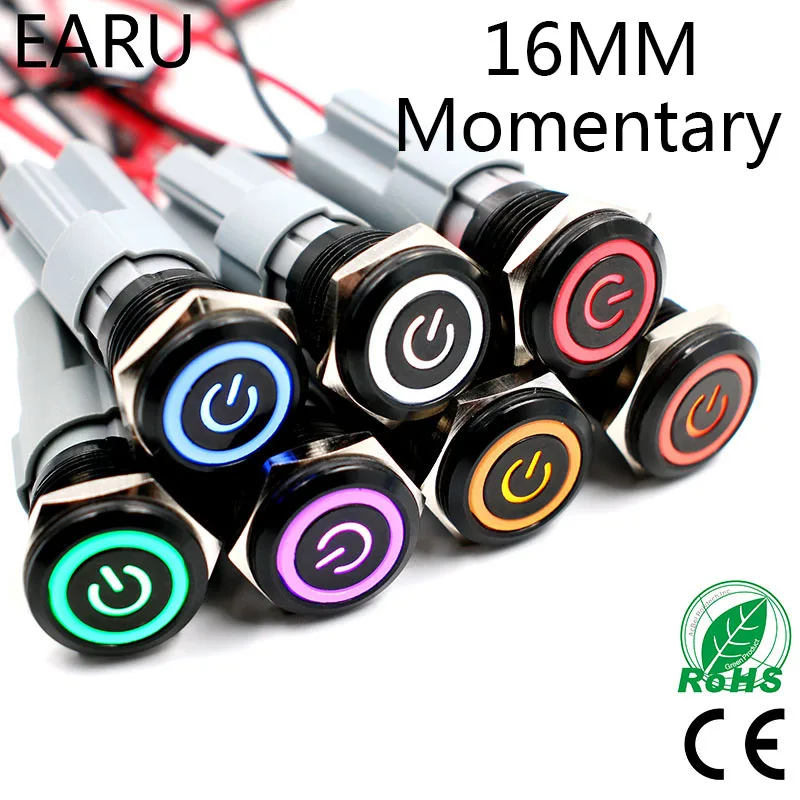 16 мм алюминиевый черный корпус водонепроницаемый металлический кнопочный переключатель светодиодный светильник 3 в 5 в 12 В 24 в 36 В 220 В мгновенный автомобильный двигатель
