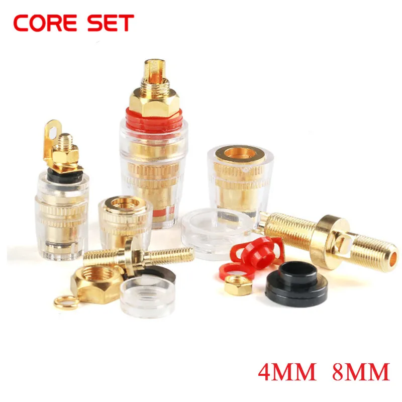 Позолоченный медный разъем типа "банан", 4 мм, резьба, средний усилитель, динамик, лопата, Клеммная Клемма, штырь типа "банан", розетка M4 M8