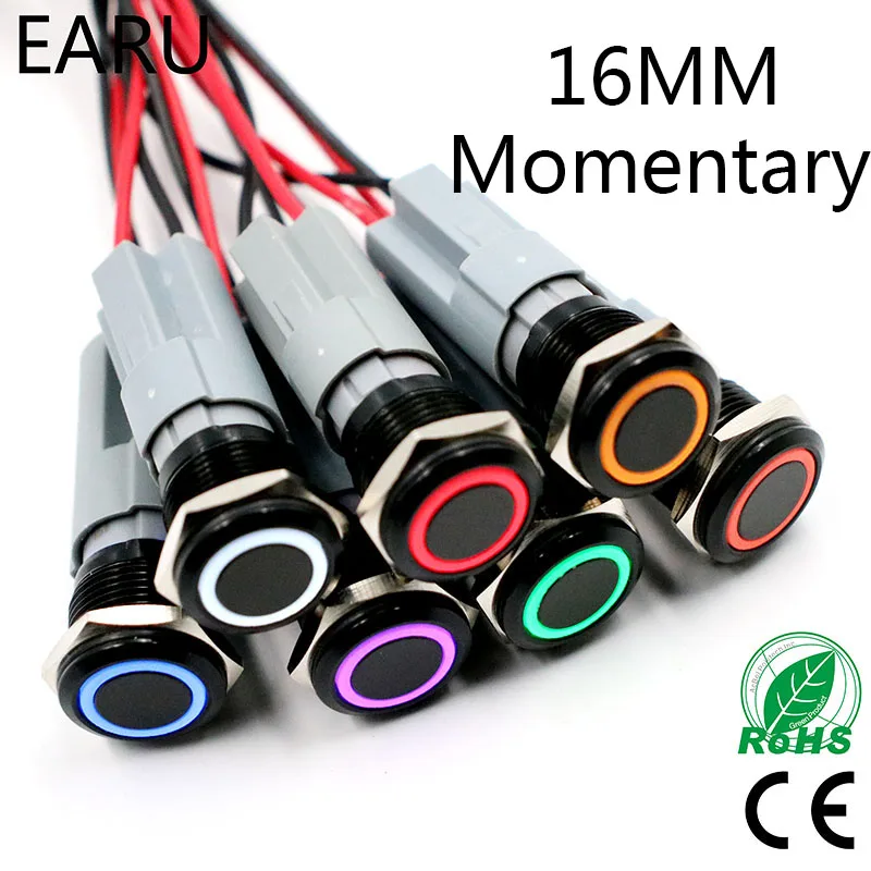 16 мм светодио дный свет моментальная Перезагрузка глинозема черный корпус Водонепроницаемый Металл кнопочный переключатель двигателя авт...