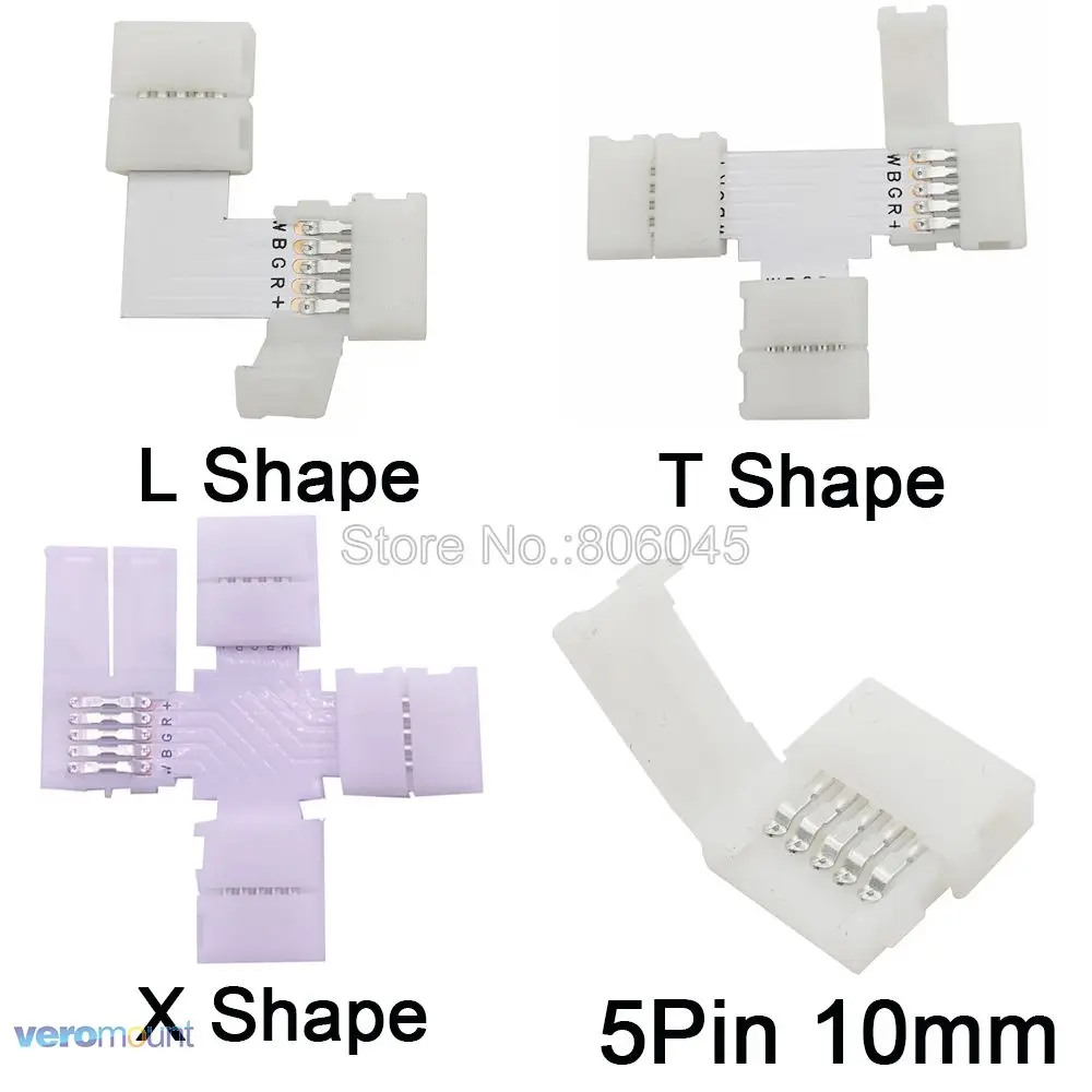 5 шт./лот 10 мм 5 контактов 5Pin L T X форма светодиодный коннектор RGBW для подключения углов под прямым углом 10 мм 5050 RGBW светодиодные полосы света