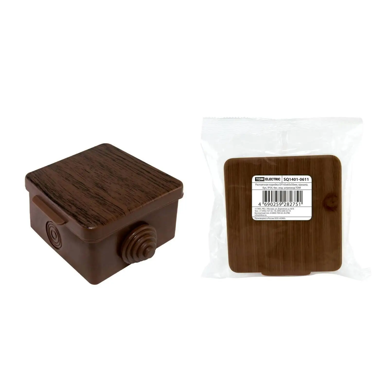 Распаячная коробка ОП 65х65х50мм, крышка, бук, IP54, 4вх. инд. штрихкод TDM SQ1401-0611