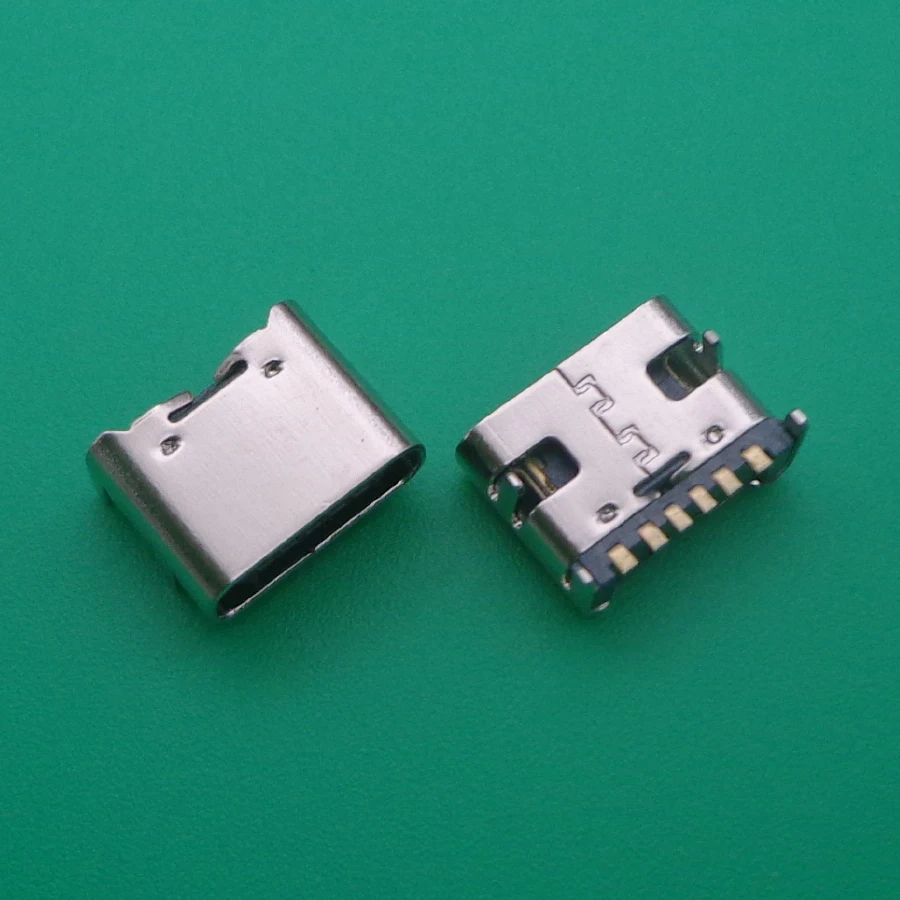 500 шт., разъем USB 3,1 Type C, 6 контактов, гнездо для зарядки питания, 3A, 30 В, номинальный щит, USB-C, поддержка контактов, сквозное отверстие