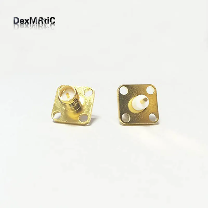 1 шт. RP-SMA Женский Джек РФ коаксиальный разъем 4 отверстиями фланец паяльной сообщению прямым анодированные золотом, оптовая продажа