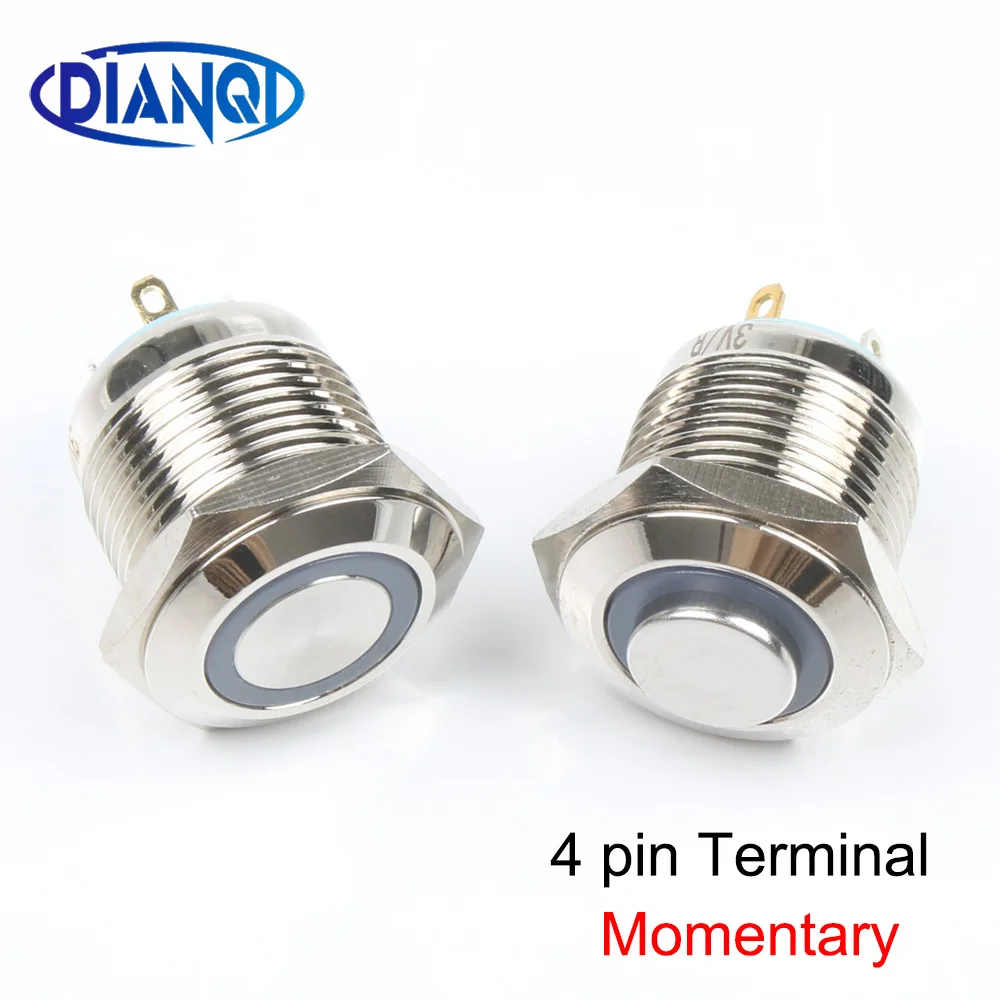 16 мм Металл латунь кнопочный переключатель освещения кольцо мгновенное 1NO Автомобильная кнопка для нажатия Контактный Терминал 16HX. F. K4