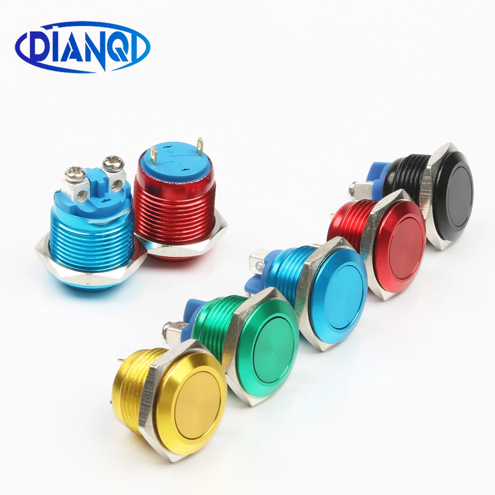 16 мм металлический пресс кнопка водостойкий никелированный переключатель латунная Кнопка 1NO высокий или плоский или полукруглая головка м...
