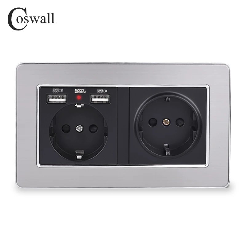 COSWALL бренд двойная Россия Испания настенная розетка стандарта ЕС с 2 USB зарядным портом скрытый мягкий светодиодный индикатор рамка из нержа...