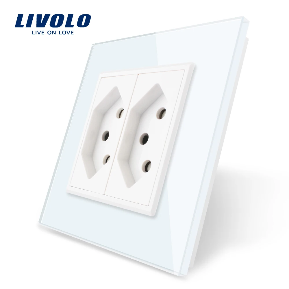 Livolo стандарт ЕС две банды швейцарская розетка питания, Красочные Хрустальные стеклянные панели, Швейцария 16A двойная настенная розетка питания