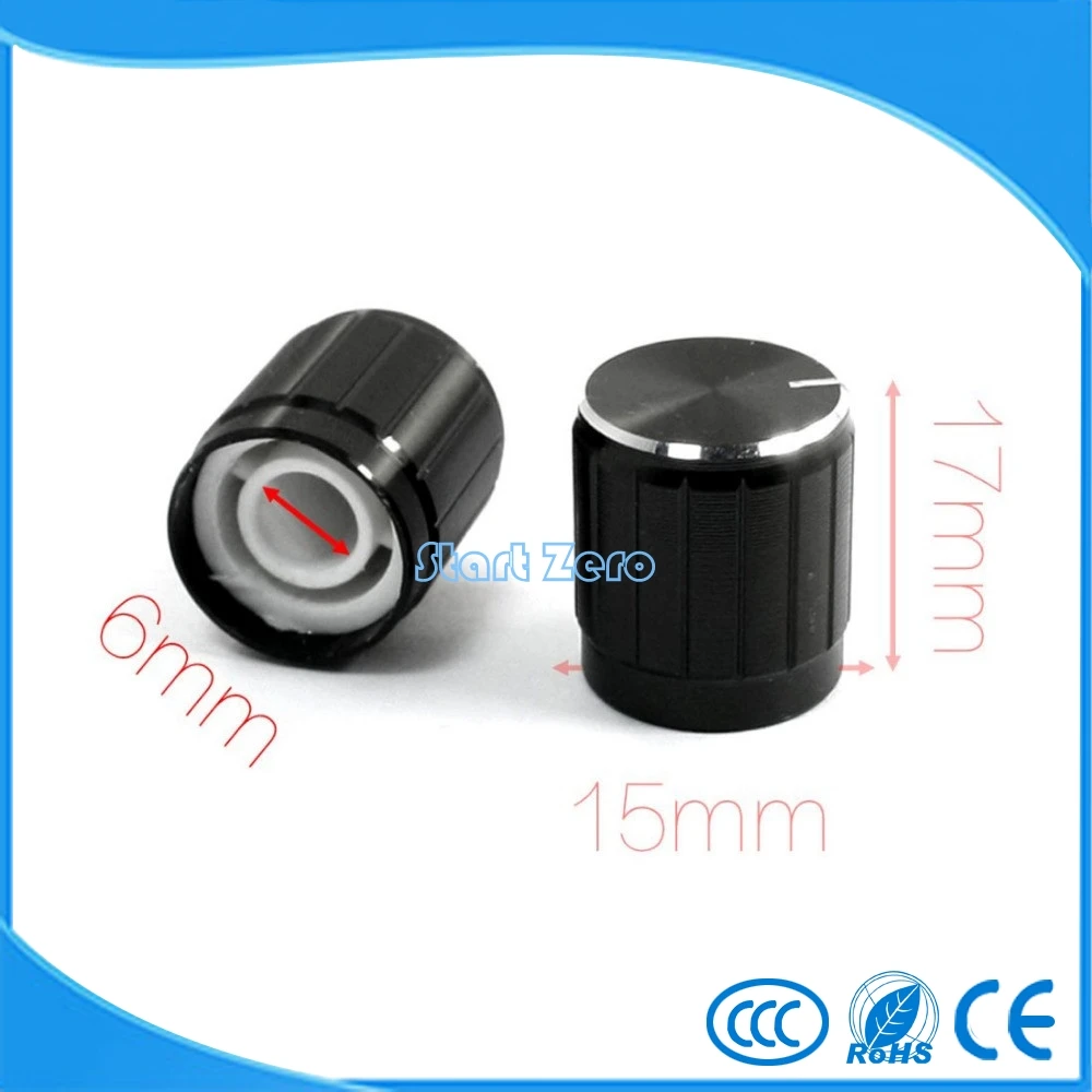 2/5/10 шт. нескользящим Ребристый черный 6 мм Серебряный тон Пластик потенциометр Управление ручки крышки 15x17 мм