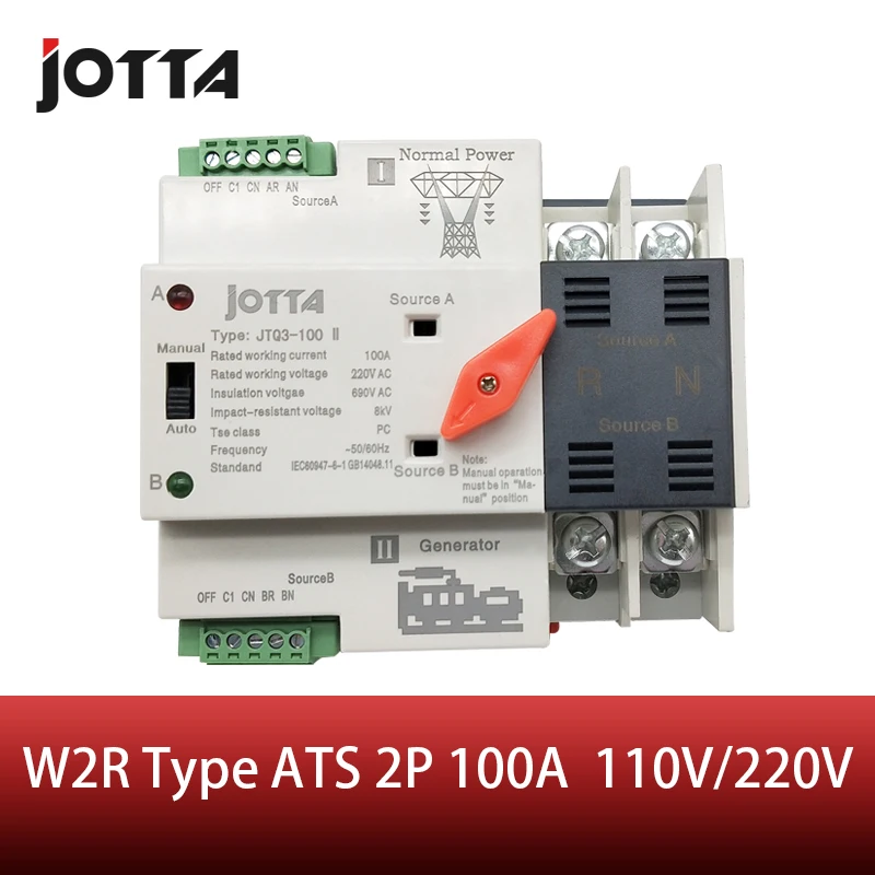 Jotta W2R-2P 110В/220В Мини АТС автоматический переключатель передачи 100A 2P электрические переключатели Двойной Выключатель питания din-рейка