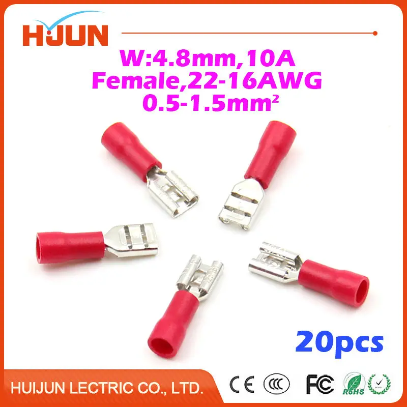20 шт./лот расширений 4.8 синий женский quick disconnect кабель Провода сращивания изоляции разъема 22-16awg 0.5-1.5mm2 fdd1.25- 187