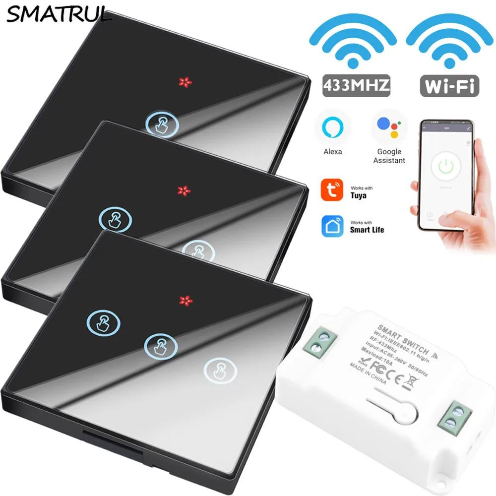 Беспроводной сенсорный выключатель SMATRUL, светильник, Wi-Fi, домашняя смарт-жизнь, приложение Tuya, RF 433 МГц, настенный релейный таймер, модуль Google home Amazon Alexa