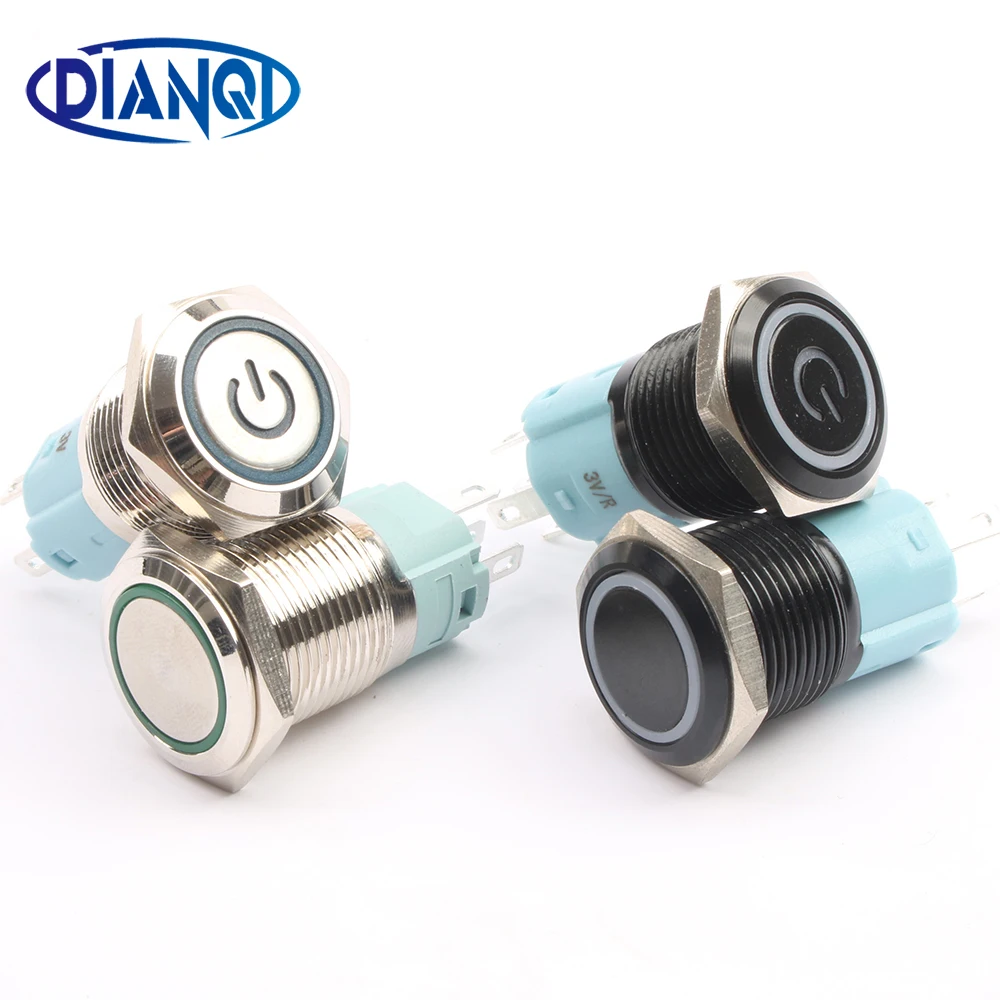 16 мм Водонепроницаемая металлическая кнопка переключатель с светодиодный светло-красный синий зеленый желтый самоблокирующийся и мгновен...