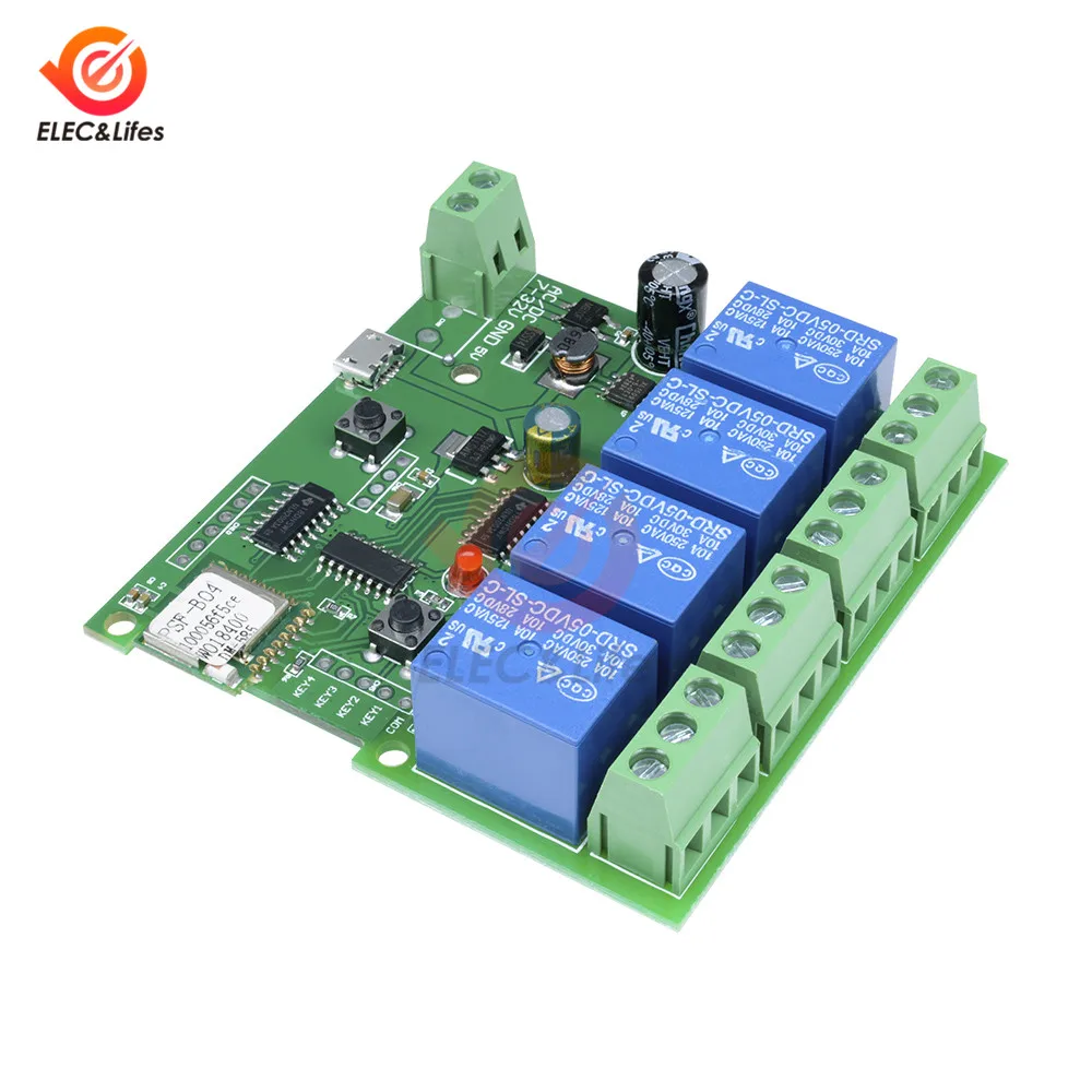 Wi-Fi, Беспроводной 10A реле постоянного тока 5В 4CH 4 канала реле за запозданиевремени переключатель приложение Дистанционное Управление для Ум...