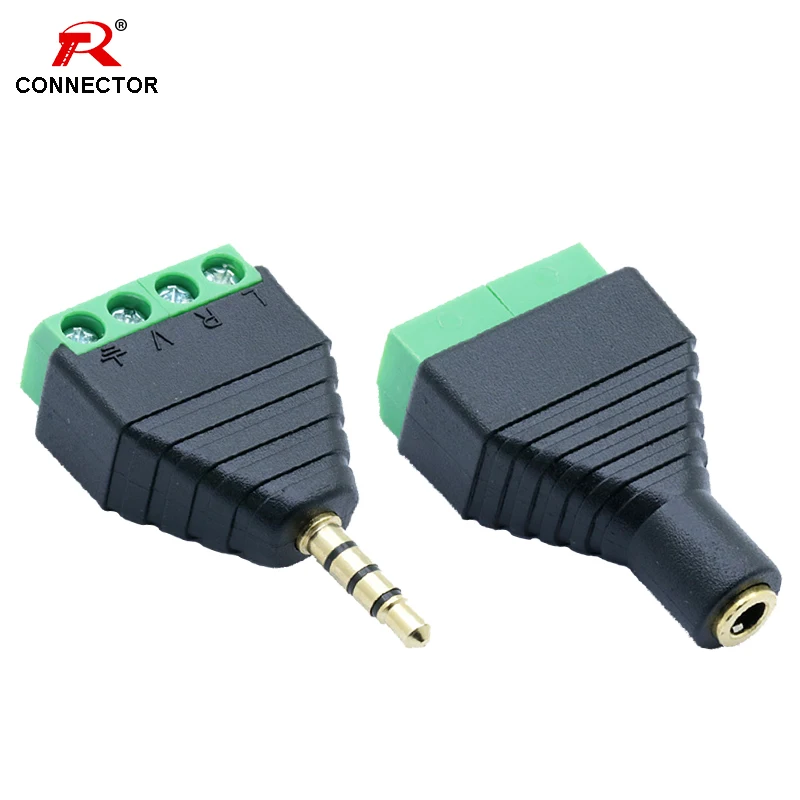 2 шт. AV терминалы, 4 полюса 3,5 мм штекер и 3,5 мм гнездо AV Balun Разъем, позолоченный