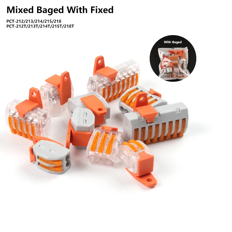 Смешанный мешок Мини Быстрый провод соединители с крепежным фитингом Универсальный Компактный проводка проводника Push-in клеммный блок PCT-212-218