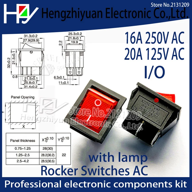 Hzy 2 шт./лот красный 4 булавки свет Вкл/Выкл Лодка переключатель 16A 250 В AC Amp 20A125V AC с лампой Кулисный Настенные переключатели AC