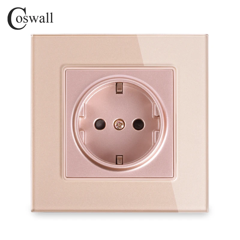 Coswall стены кристалл стекло Панель мощность разъем заземлен, 16A Золото ЕС Стандартный электрическая розетка 86 мм * мм