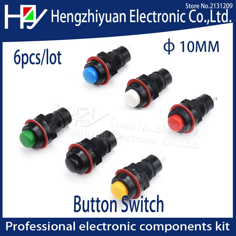 Hzy 6 шт./лот self-кнопка сброса переключатель 10 мм возвратный кнопка с самовозвратом переключатель самоблокирующимся кнопочный переключатель ...