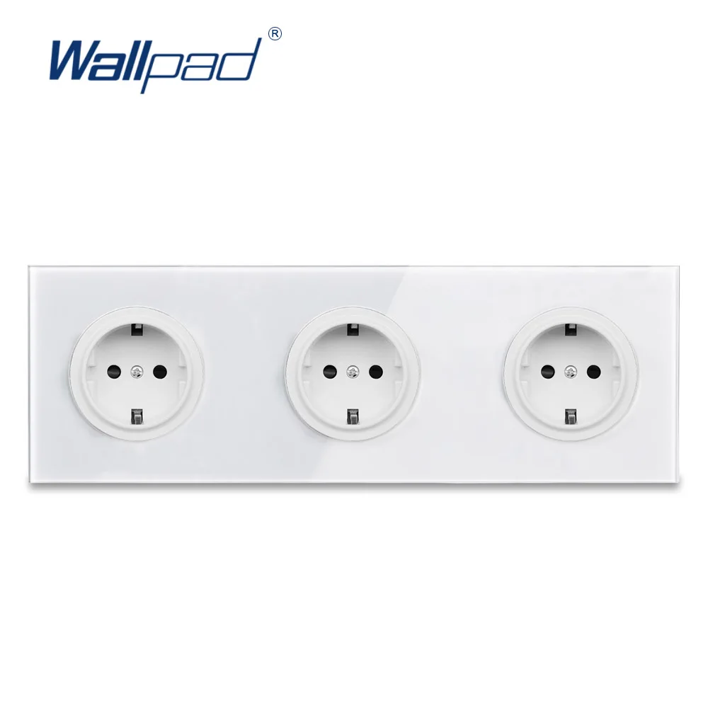 Адррес Wallpad L6 Трехместный 3 Gang ЕС немецкая штепсельная вилка Schuko Мощность электрическая розетка с белое закаленное стекло Панель 258*86 мм