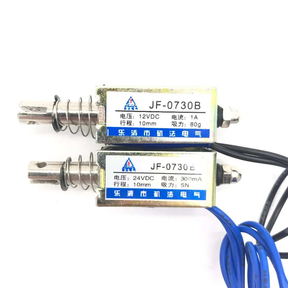 Тянуть Тип jf-0730b DC 6 В 12 В 24 В Линейный электромагнитный Электромагнит 1A силы 80 г Путешествия 10 мм
