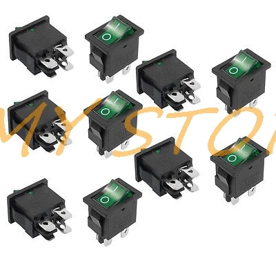 10 шт. 4 булавки DPST зеленый неоновый свет вкл/выкл кулисный переключатель AC 6A/250 В 10A/125