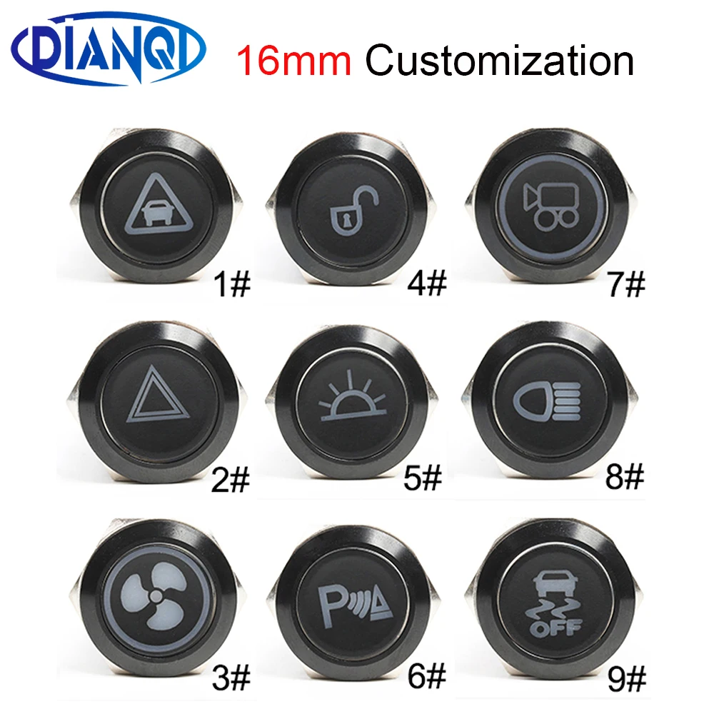 16 мм Алюминиевый металлический светодиодный логотип фиксированный переключатель кнопки настраиваемый автомобильный динамик рожок buttonswitch...