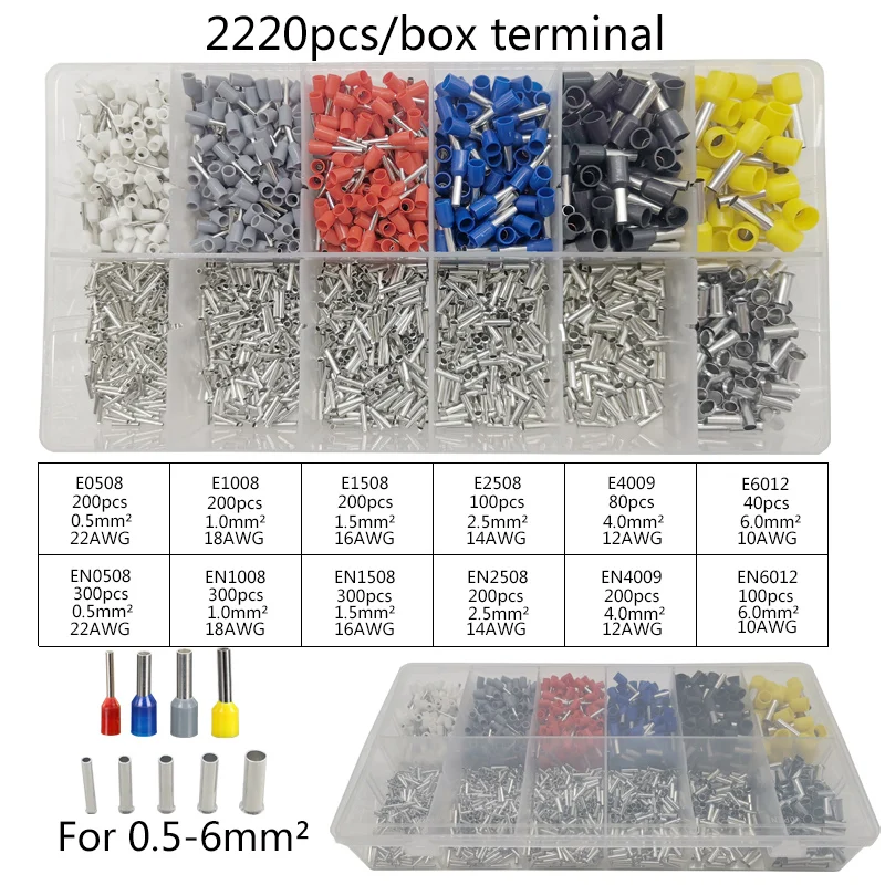 2220 шт. трубчатые клеммы для проводов Наконечники Обжимные электрические Клеммные Соединители провода Соединительная коробка упакованный ...