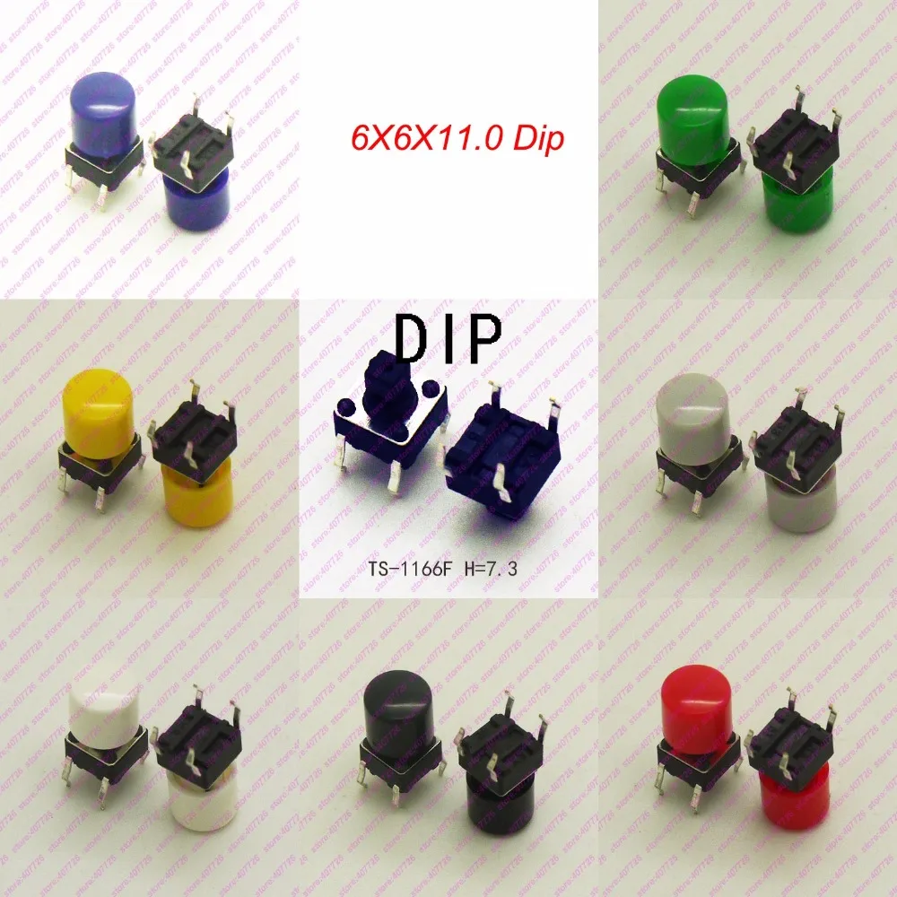 1000 шт. 6x6x7.3 мм (H = 11 мм с Кепки) 4PIN DIP Мгновенный Такт Топ на пуговицах квадратная голова тактический ключи переключатель мини кнопка