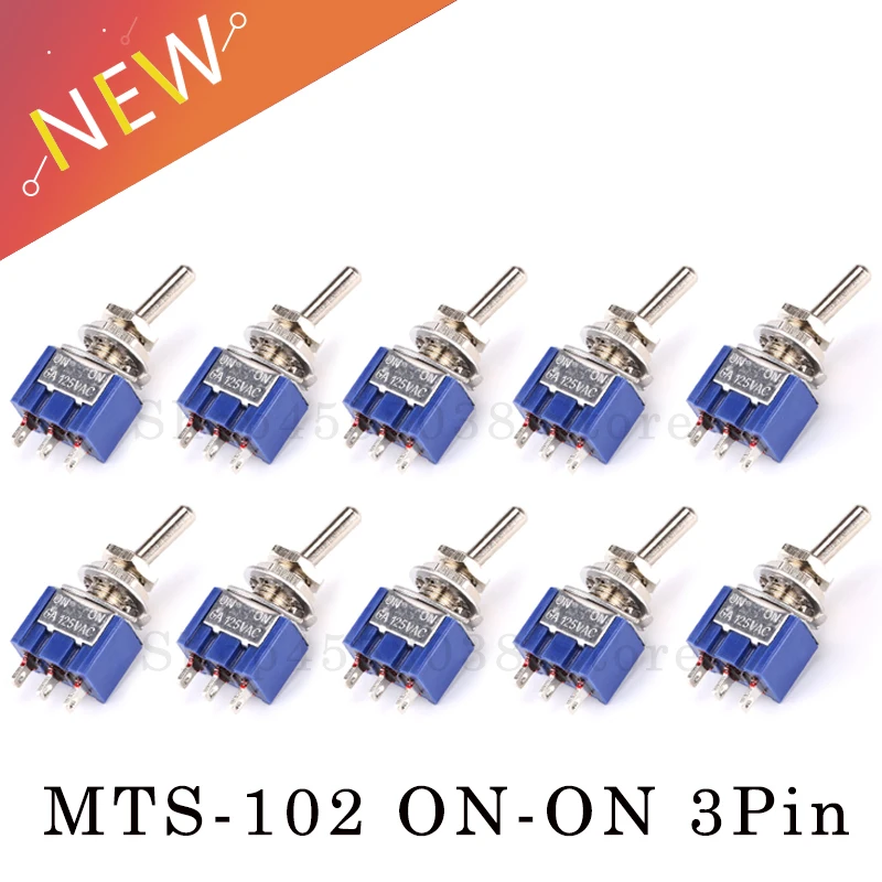 10 шт./5 шт. миниатюрный тумблер однополюсный двойной бросок SPDT (MTS102) ON-ON 120VAC 6A 1/4 дюймов монтажный MTS-102