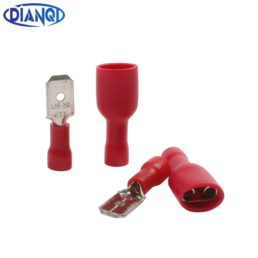 100 шт. FDFD 1,25-250 MDD1.25-250 6,3 мм красный женский + Мужской Лопата изолированный Электрический обжим клеммные разъемы Электрический кабель вилка