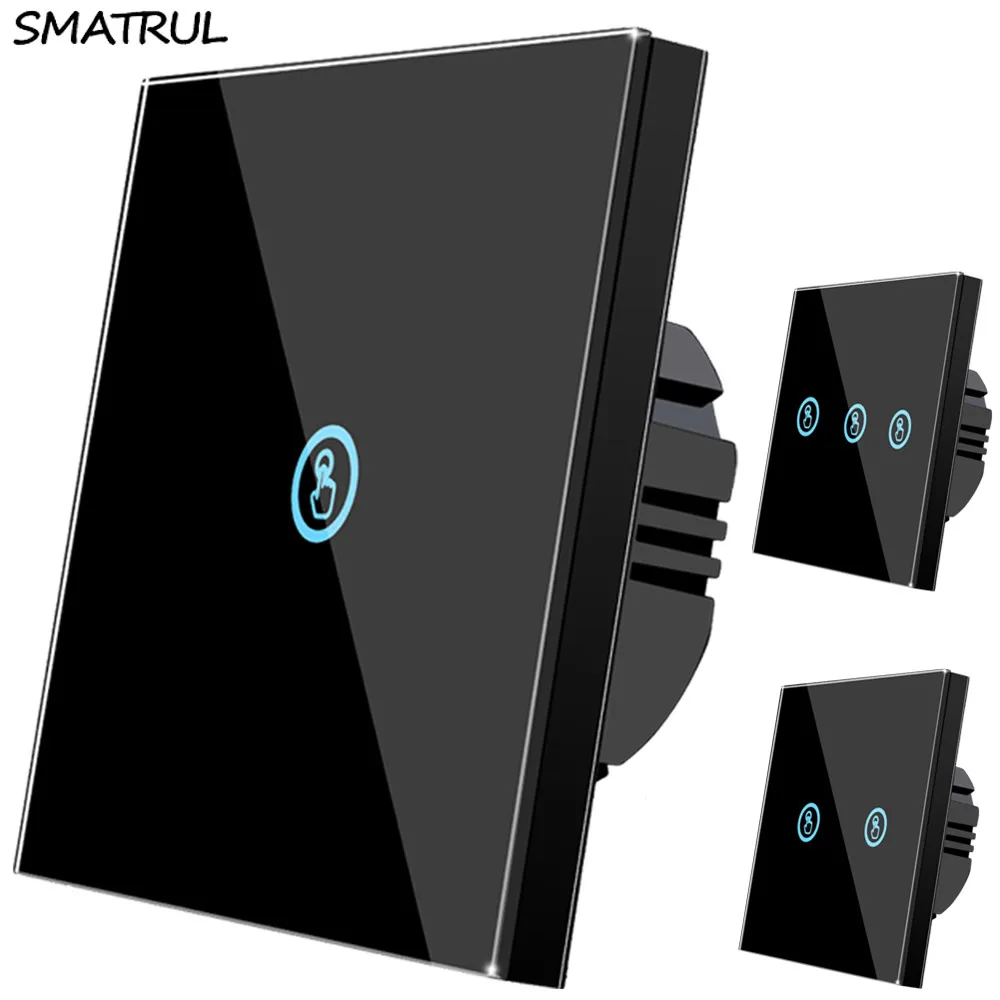 SMATRUL сенсорный настенный включатель светодиодной лампочки лампа Кристалл Стекло экран панель 1 2 3 банды AC 110 В 220 в 240 В ЕС Великобритания США ...