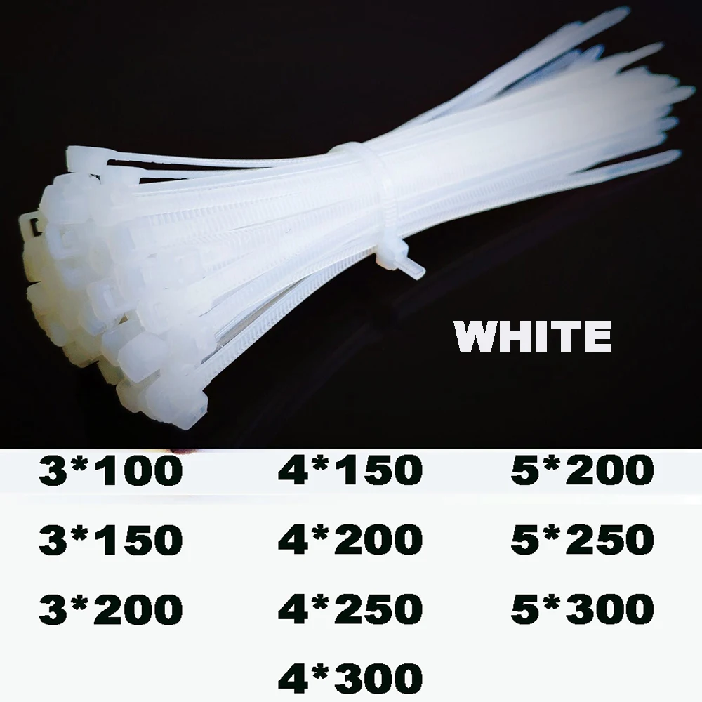 Self-блокировочные стяжки для кабеля Пластик нейлоновые стяжки кабельные стяжки 3*100 3*150 3*200 4*150 белые 100 шт Нейлоновые хомуты закрепите петли к...
