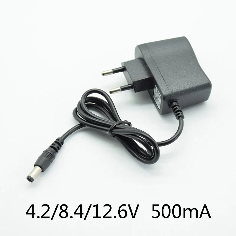 Конвертер адаптер DC 8,4 в/12,6 в 500mA/0.5A питание зарядное устройство ЕС Plug 5,5 мм * 2,5 (2,1 мм) AC к DC для 18650 литиевых батарея