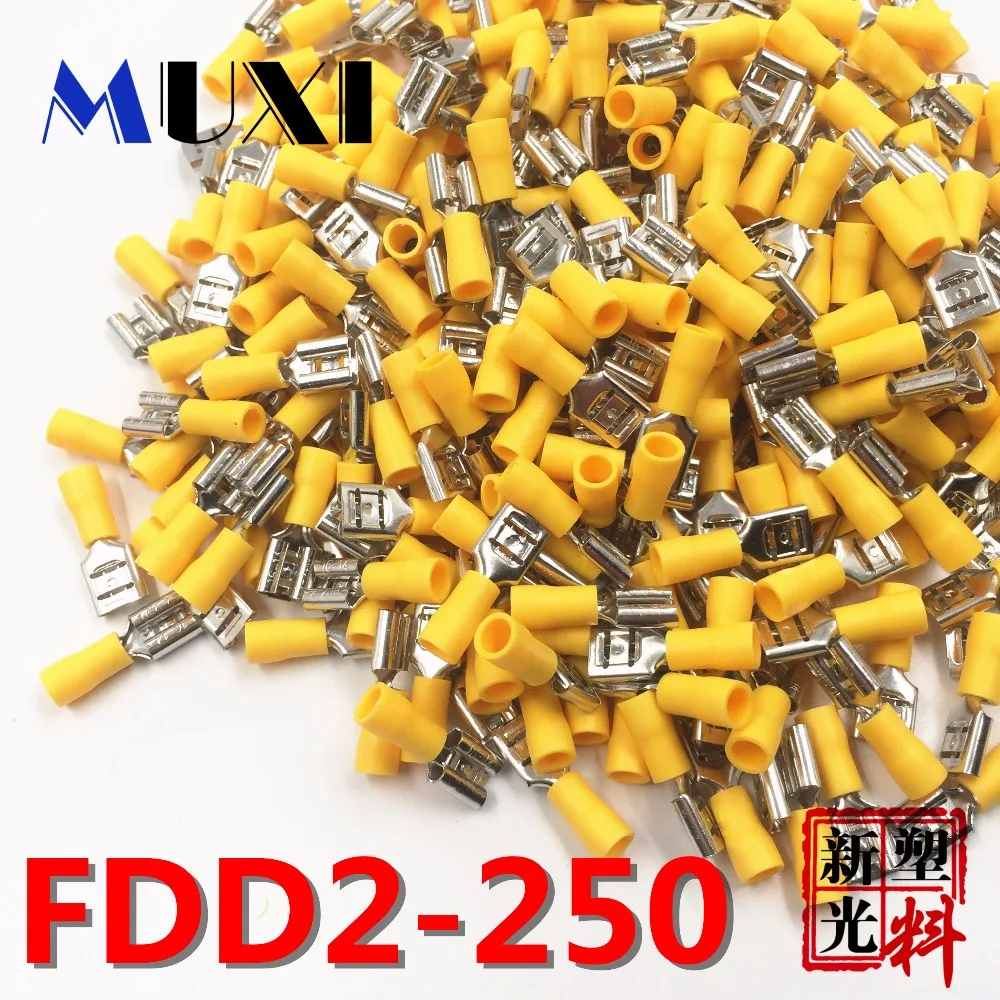 FDD2-250 женский изолированный Электрический обжимной терминал для 1,5-2.5mm2 инструменты для наращивания волос кабель провода разъем 100 шт./упак. ж...