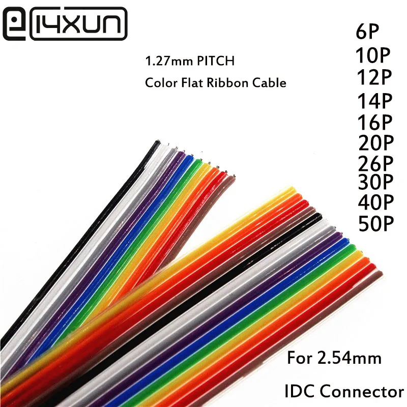 1 метр 10P/12P/14P/16P/20P/26P/34P/40P/50P 1,27 мм цветной плоский ленточный кабель Rainbow DuPont провод для FC разъем Dupont