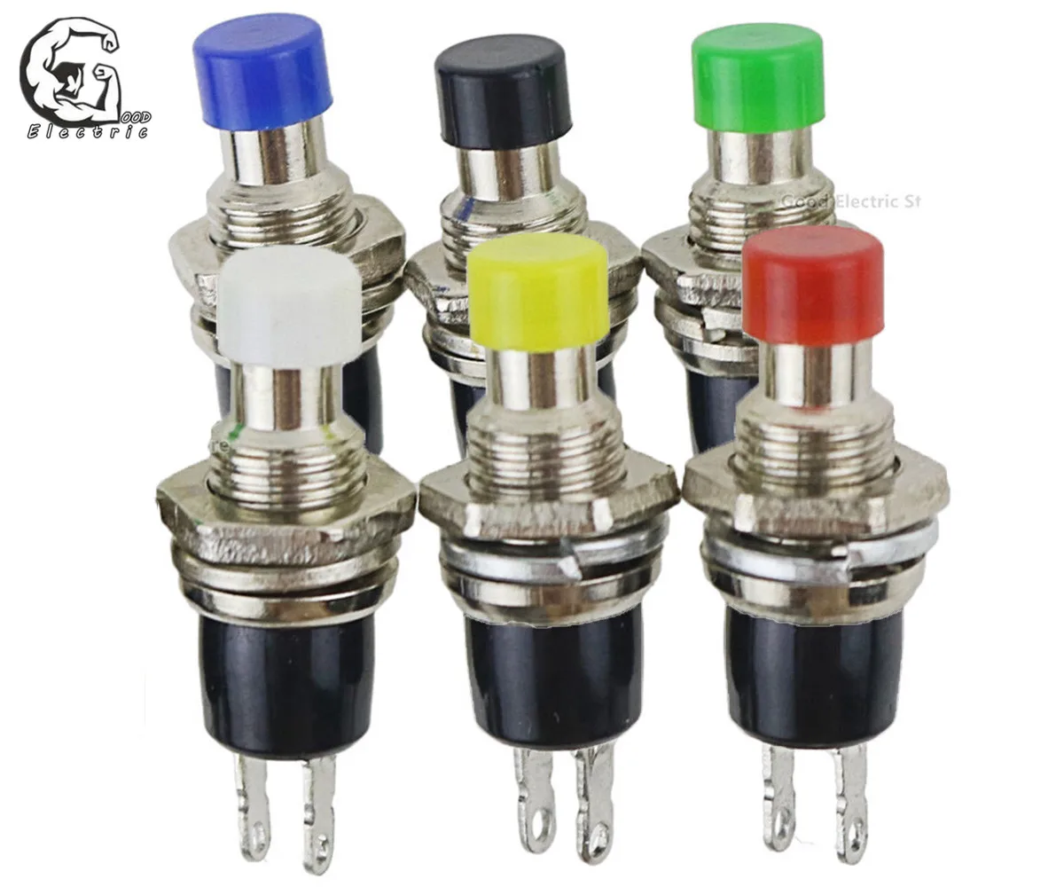 6 шт. PBS-110 7 мм Нажмите кнопку выключения резьбы многоцветные 2 булавки кнопка с самовозвратом переключатель (желтый, черный, синий, белый, кра...