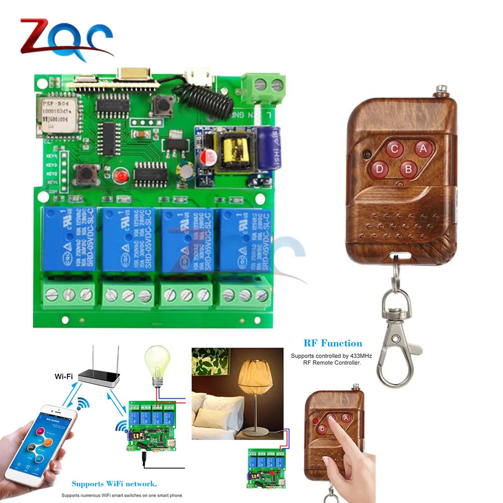 Sonoff WiFi переключатель 433 МГц 4CH AC 85-220 В WiFi переключатель таймер релейный модуль RF с 433 МГц пульт дистанционного управления для умного дома