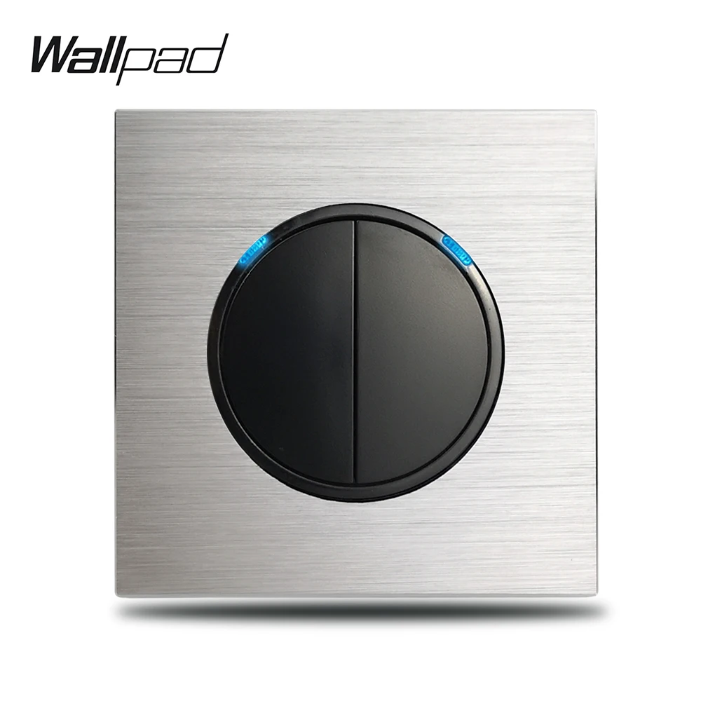 L6 2 Выключатель двойной выключатель света 1 способ 2 способ матовый серебристый алюминий пластина Кнопка возврата случайный щелчок с синим с...