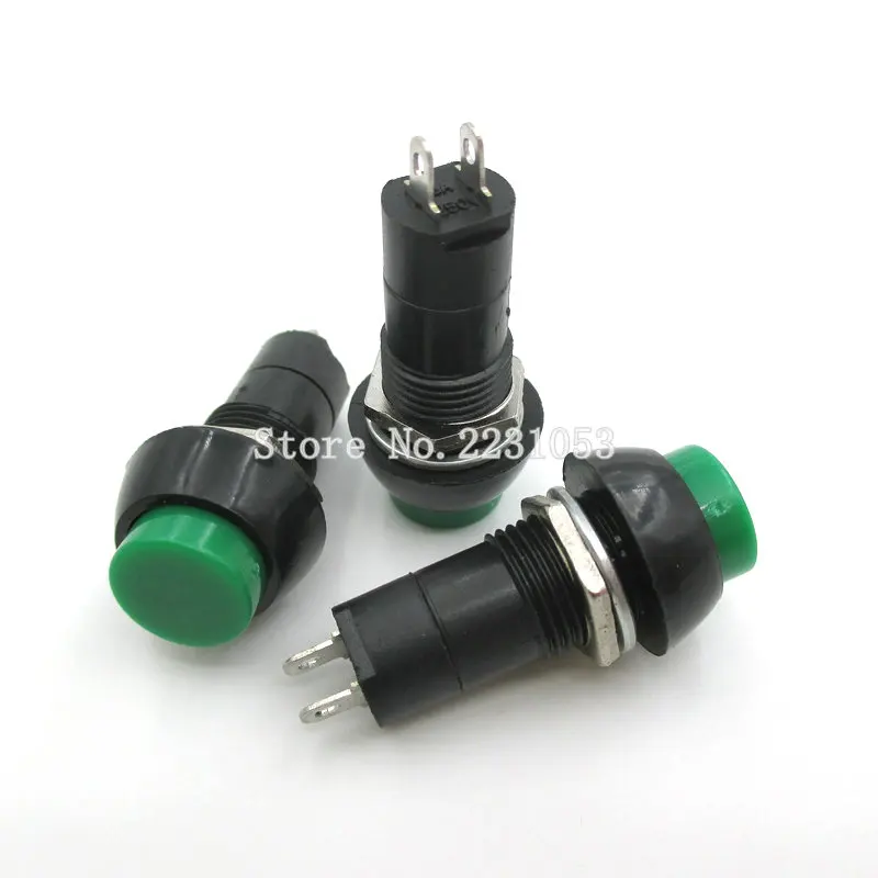 5 шт./лот 2 Pin пластик 12 мм кнопка фиксации Мгновенный Переключатель 3A 150 в зеленый цвет PBS-11A