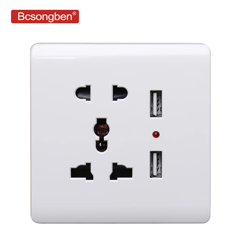 Bcsongben ЕС стандартная розетка панель, 5V2. 1A двойной usb-порт для зарядки, пористая настенная розетка 10A глобальная универсальная 5 Отверстие разъем