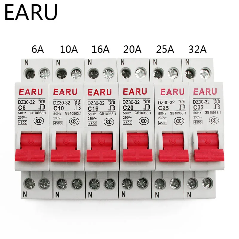 DZ30-32 ДПН 1P + N Мини автоматический выключатель MCB 6A 10A 16A 20A 25A 32A Din рейку Монтажный вырез миниатюрный Бытовой Воздушный выключатель OEM DIY