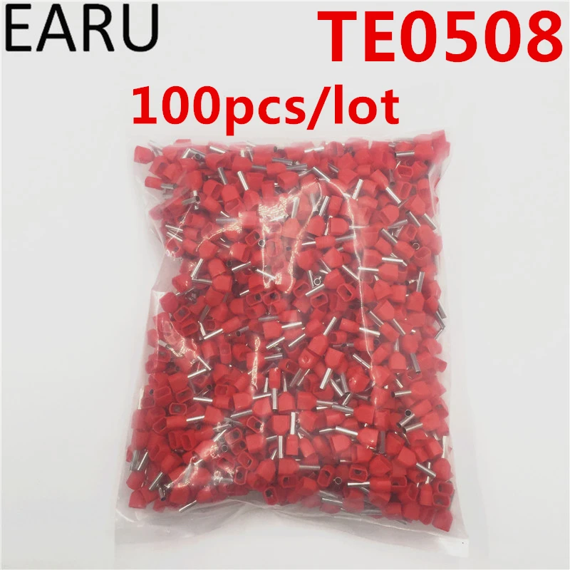 100 шт. E трубка TE0508 Тип двойной трубы изолированные двойной шнур холодно-пресс клеммный блок разъемов конца иглы многоцветный 2X0. 5mm2