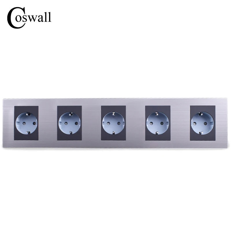 Coswall 16A ЕС Стандартный Пятиместный выход роскошный стены 5 способ Мощность разъем Нержавеющая сталь Панель электрической розетки переменно...
