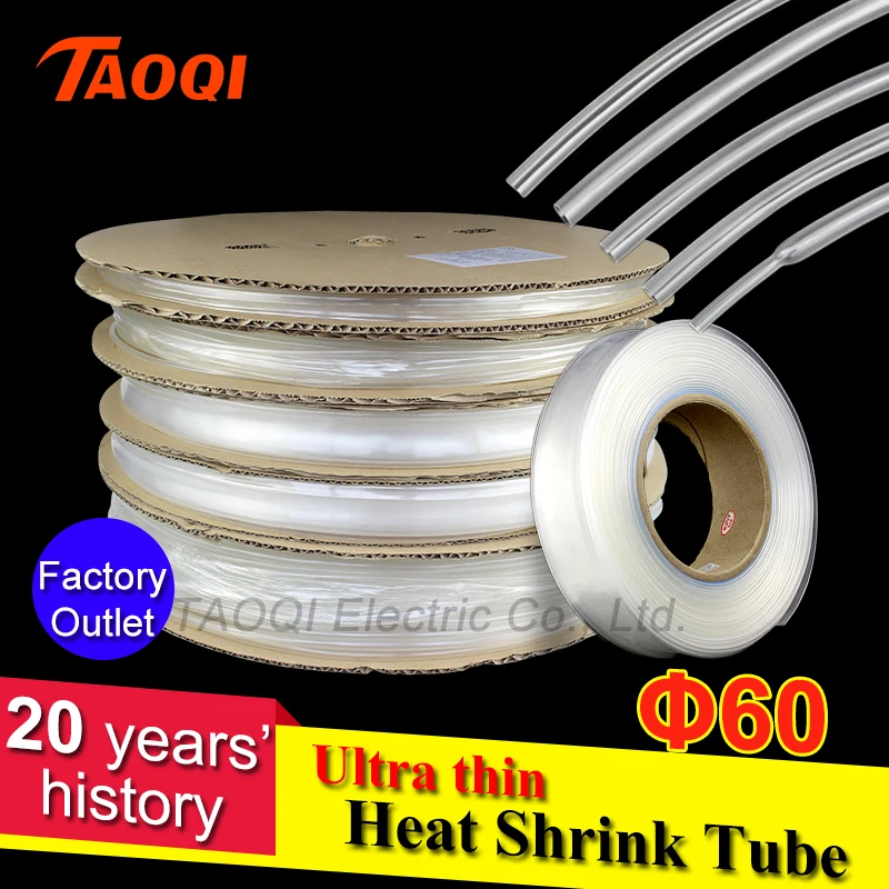 60 мм ультра тонкий прозрачный термоусадочный кабель трубка изоляционная оплетка обертывание комплекты проводов Оптовая цена