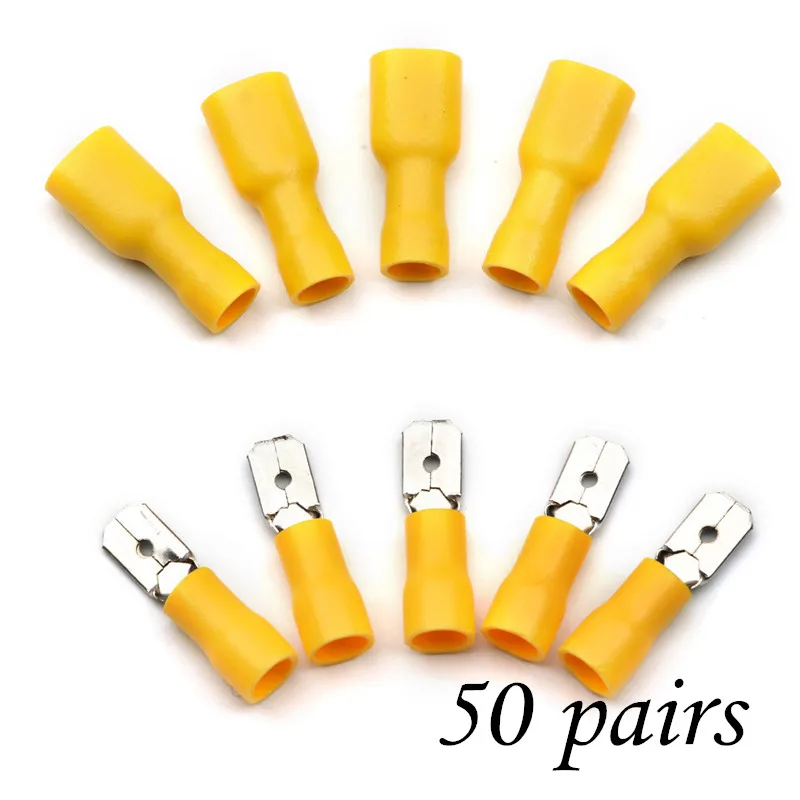 100 шт. 50 пар 6,3 мм 16-14AWG Женский Мужской электропроводка разъем ОБЖИМНАЯ Изолированная клемма Лопата FDFD5.5-250 MDD5.5-250