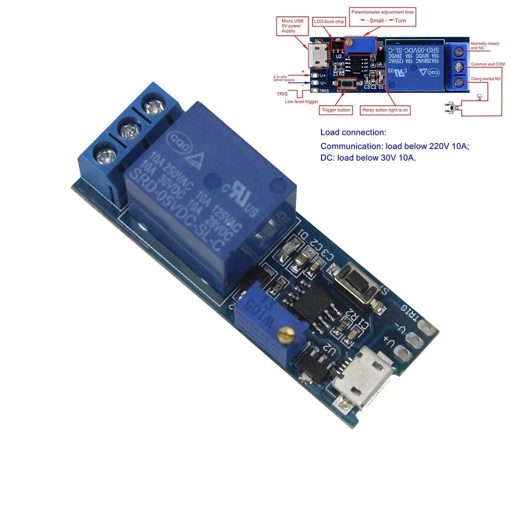 Умная электроника 5 V-30 V Micro USB Мощность Регулируемая задержка таймер реле Управление модуль, триггер переключатель задержки
