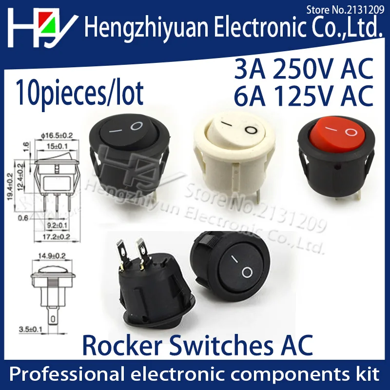 Hzy 10 шт./лот 15 мм 16 мм Диаметр маленькая круглая лодка кулисный переключатель черный мини круглый белый красный 2 Pin ВКЛ-ВЫКЛ кулисный переклю...