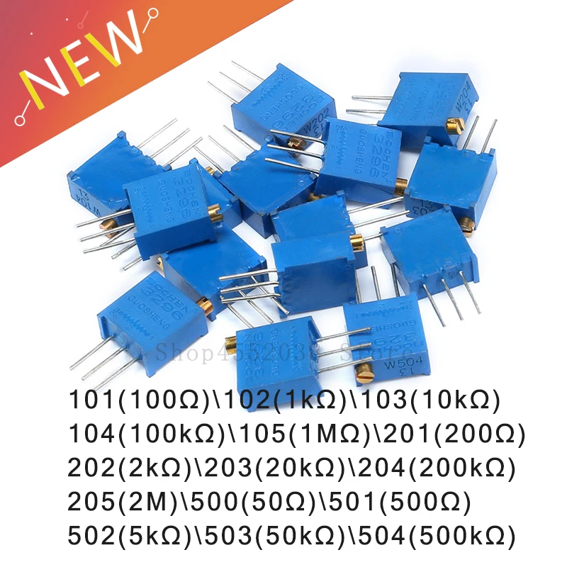 15 шт. = 15 значений 3296 Вт многооборотный Подстроечный резистор потенциометра Комплект высокой точности 3296 переменный резистор Электронный Набор diy